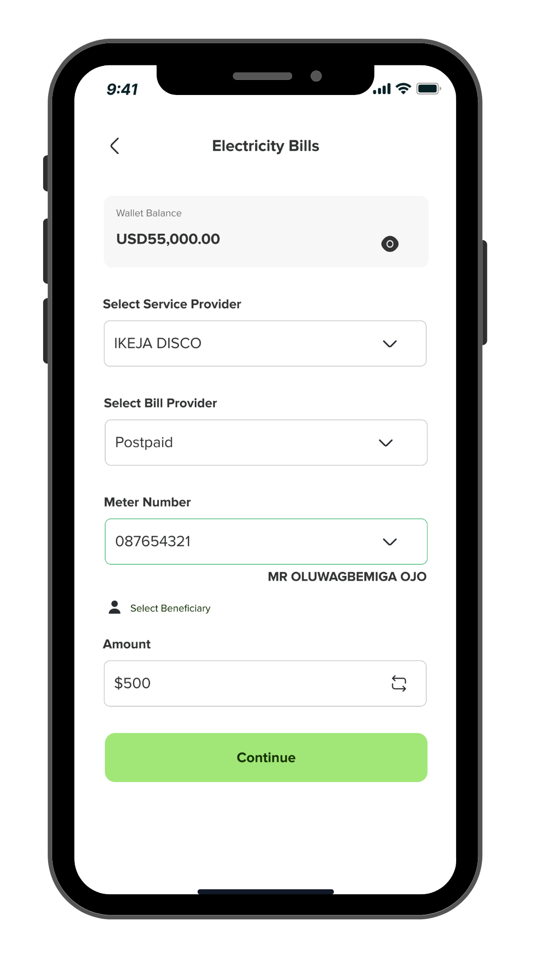 To pay electricity bills, just enter the meter number you’re paying for.